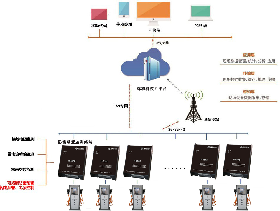 輝和科技云充電樁防雷接地、過雷電流診斷、預警系統(tǒng) |
