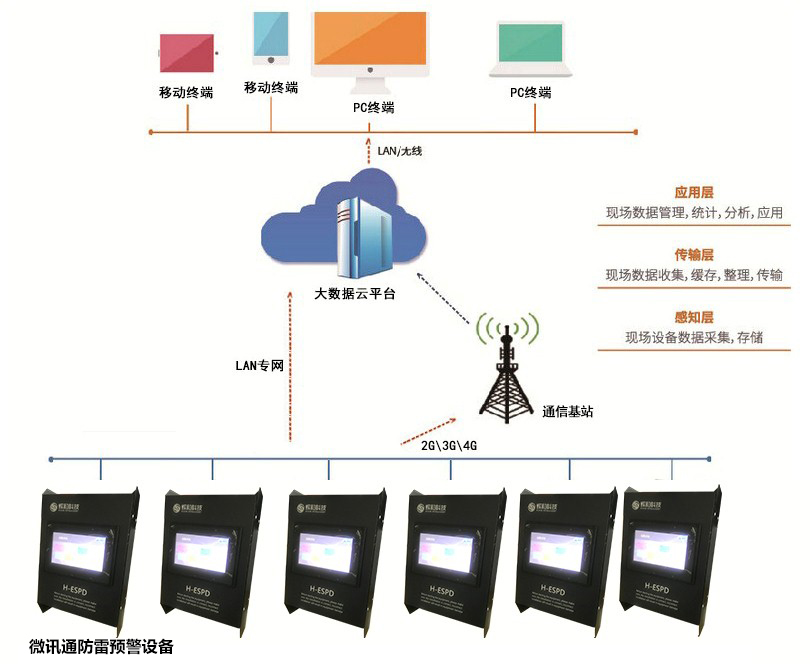 輝和科技云充電樁防雷防護系統(tǒng)由云端服務平臺、系統(tǒng)報警設備、防雷預警終端組成。通過GPRS通訊信號與輝和科技云平臺監(jiān)控系統(tǒng)進行通訊。